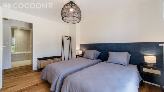 - Chambre 2 : avec deux lits simples, pouvant être rapprochés pour former un lit double (sur demande)