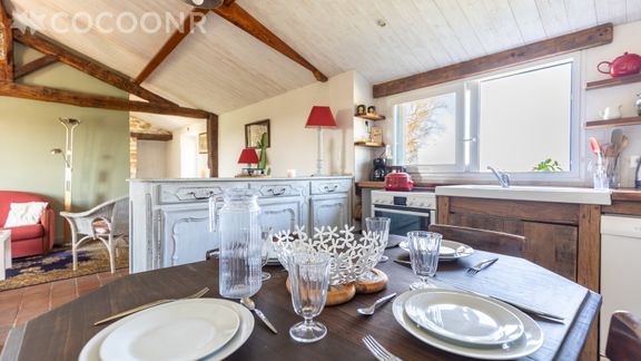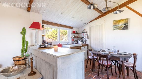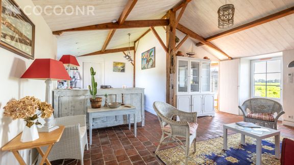 L'agence Cocoonr/Book&Pay vous propose à la location, à Bouin, cette charmante maison plain-pied à 500 m du port d’une superficie de 75 m² et pouvant accueillir jusqu’à 7 voyageurs. Elle est composée d’une jolie pièce à vivre de 30 m², d'une cuisine équipée, de deux belles chambres, d'une salle de bain (avec baignoire) et vous pourrez profiter d’un jardin d’environ 1 000 m².