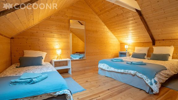 - Chambre 1 : avec 1 lit queen-size (160×200) et 1 lit simple (90×190)