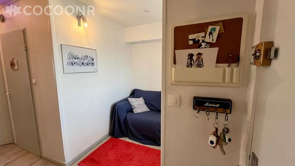 - À l'entrée, se trouve un canapé-lit double séparé de la pièce de vie par un couloir et une porte