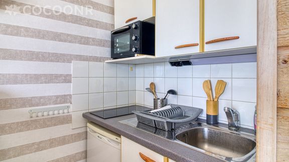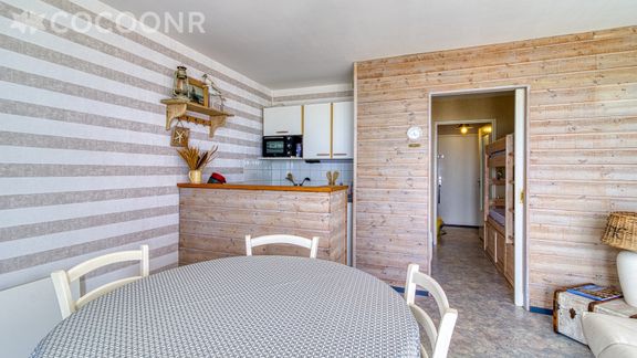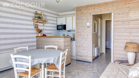 L'agence Cocoonr/Book&Pay vous propose à la location, à Bray-Dunes, ce charmant studio au pied de la plage, d’une superficie de 32 m² et pouvant accueillir jusqu’à 4 voyageurs. Situé au 5ᵉ étage (avec ascenseur), il se compose d’une jolie pièce à vivre de 20 m², d'une kitchenette équipée, et d'une salle de bain (avec baignoire).