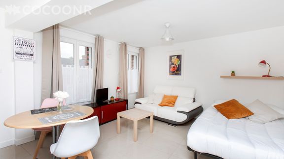 L'agence Cocoonr/Book&pay vous propose à la location, sur la commune de Brionne, ce charmant studio d’une superficie de 30 m² et pouvant accueillir jusqu’à 2 voyageurs. Situé au 2e étage (sans ascenseur), il se compose d’une jolie pièce à vivre de 25 m², cuisine équipée, d'une salle de bain (avec douche), et d'un espace nuit. Draps et serviettes inclus, nous n’attendons plus que vous !