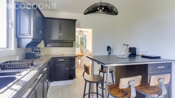 - Une cuisine équipée avec notamment : bouilloire électrique, four, four à micro-ondes, grille-pain, plaques de cuisson...