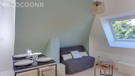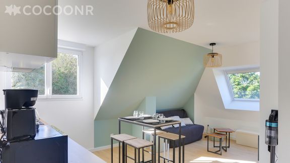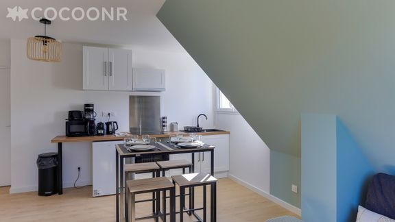 L'agence Cocoonr/Book&Pay vous propose à la location, sur la commune de Bruz, ce charmant appartement d’une superficie de 37 m² et pouvant accueillir jusqu’à 4 voyageurs. Situé au 2ᵉ étage (sans ascenseur), il se compose d’une pièce à vivre de 28 m², cuisine ouverte équipée, d’une chambre, une salle d'eau (avec douche) et vous pourrez profiter d’un jardin partagé d’environ 1 500 m². Wifi (fibre optique), draps et serviettes inclus, nous n’attendons plus que vous !
