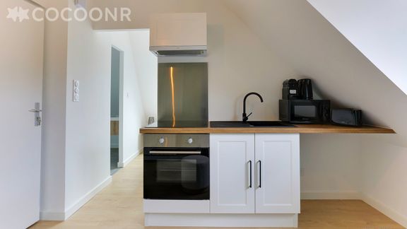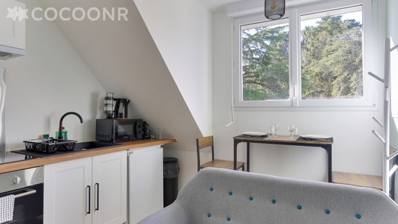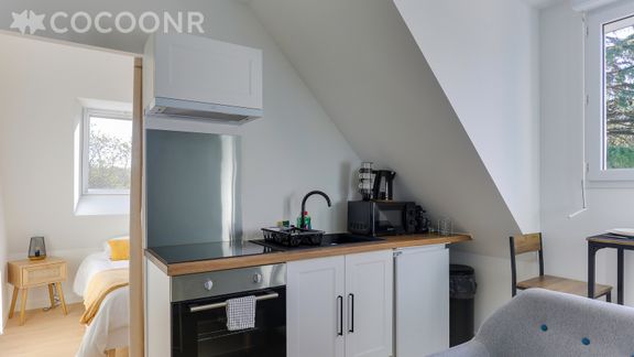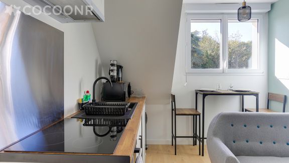 L'agence Cocoonr/Book&Pay vous propose à la location, sur la commune de Bruz, ce charmant appartement d’une superficie de 28 m² et pouvant accueillir jusqu’à 2 voyageurs. Situé au 2ᵉ étage (sans ascenseur), il se compose d’une pièce à vivre de 20 m², cuisine ouverte équipée, d’une chambre, une salle d'eau (avec douche) et vous pourrez profiter d’un jardin partagé d’environ 1 500 m². Wifi (fibre optique), draps et serviettes inclus, nous n’attendons plus que vous !