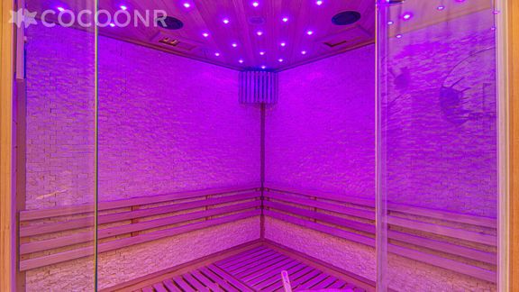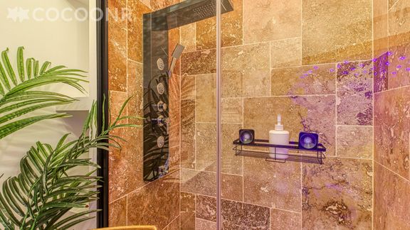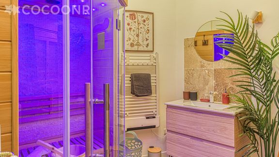 - Une salle d'eau avec douche (jets hydromassants) et sauna finlandais