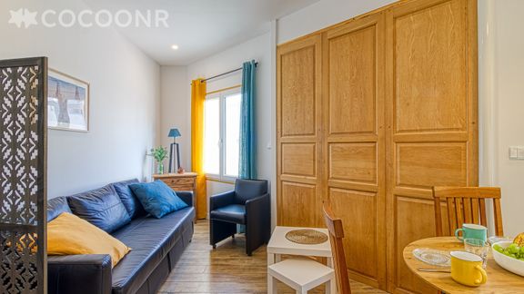 - Une pièce de vie 15m² avec climatisation, un canapé-lit double, TV, Wifi et un coin repas pour 4 à 6 personnes