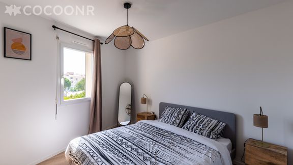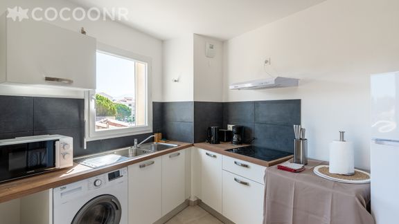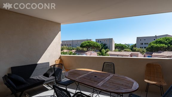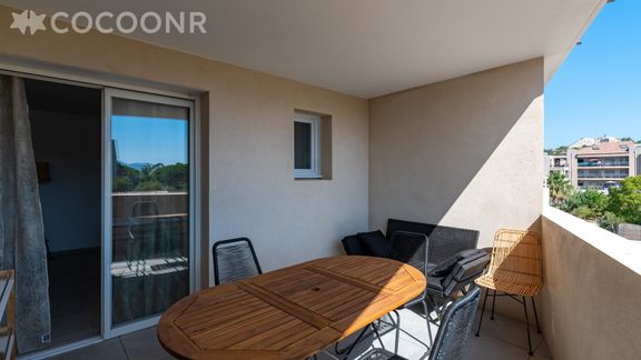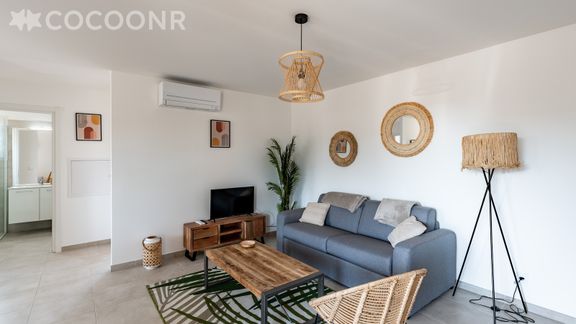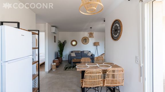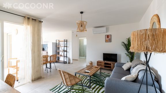 L'agence Cocoonr vous propose à la location, à Calvi, ce charmant appartement climatisé à moins de 150 mètres de la plage, d’une superficie de 64 m² et pouvant accueillir jusqu’à 6 voyageurs. Situé au 2e étage (avec ascenseur), il se compose d’une jolie pièce à vivre de 28 m², d'une cuisine ouverte équipée, de deux belles chambres, une salle d'eau et vous pourrez profiter d'une terrasse pour déjeuner en extérieur. Nous n’attendons plus que vous !