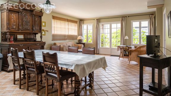 - Une pièce de vie de 37 m² avec TV, canapé et espace salle à manger.