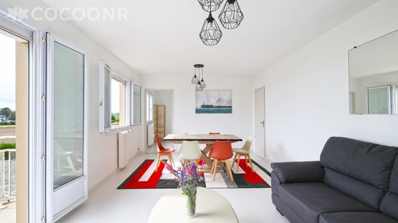 L'agence Cocoonr/Book&Pay vous propose à la location, à Cancale, ce logement au premier étage au sein d'une charmante maison partagée avec vue mer, à moins d’un kilomètre de la plage, d’une superficie de 110 m² et pouvant accueillir jusqu’à 6 voyageurs. Il est composé d’une jolie pièce à vivre de 19 m², d'une cuisine équipée, de trois chambres, d'une salle d'eau (avec douche) et vous pourrez profiter d’un jardin d’environ 50 m². Wifi (fibre optique), draps et serviettes inclus, nous n’attendons plus que vous !