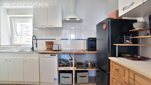 - Une cuisine équipée avec notamment : bouilloire électrique, four, four à micro-ondes, grille-pain, lave-vaisselle, plaques de cuisson...