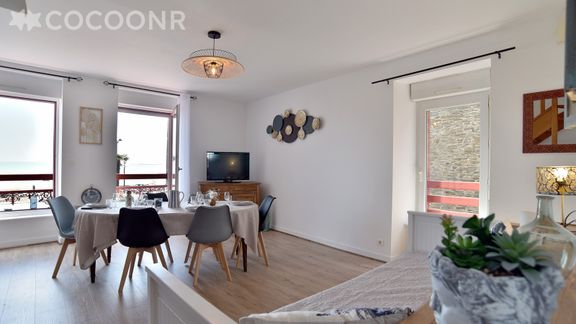 L'agence Cocoonr/Book&Pay vous propose à la location, sur la commune de Cancale, ce charmant appartement exposé "Sud-Est" avec vue mer, d’une superficie de 56 m² et pouvant accueillir jusqu’à 5 voyageurs. Situé au 1er étage (sans ascenseur), il se compose d’une jolie pièce à vivre, d'une cuisine équipée, de trois belles chambres et d'une salle de bain. Wifi (fibre optique), draps et serviettes inclus, nous n’attendons plus que vous !