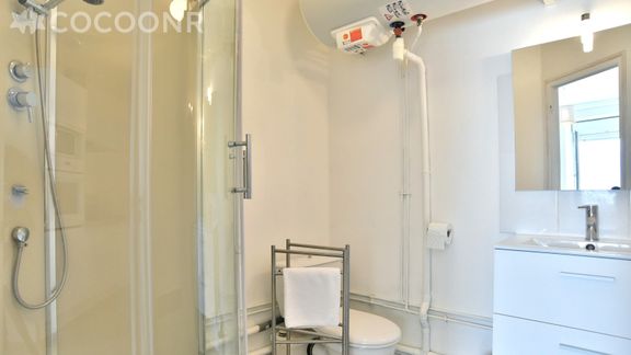- Une salle d'eau avec douche, WC