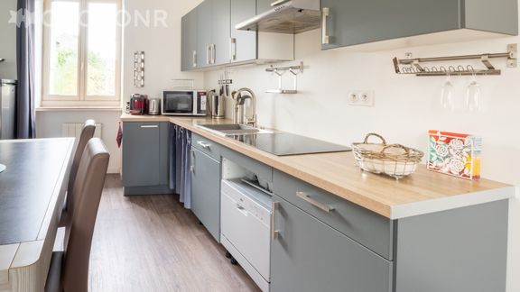 - Cuisine ouverte sur le séjour et entièrement équipée : lave-vaisselle, four, plaques de cuisson, réfrigérateur, micro-ondes, grille-pain, bouilloire, cafetière, vaisselle et couverts...