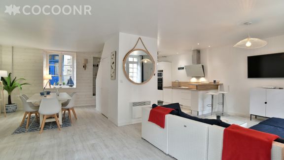 L'Agence Cocoonr/Book&Pay vous propose, à Cancale, cette charmante maison de pêcheur entièrement rénovée sur 3 niveaux avec perron de quelques marches. À 150 mètres de la plage du port, d’une superficie de 130 m² et pouvant accueillir jusqu’à 8 voyageurs. Elle est composée d’une jolie pièce à vivre de 50 m², d'une cuisine ouverte équipée, de quatre belles chambres, trois salles d'eau (avec douche). Wifi (fibre optique) inclus, nous n’attendons plus que vous !