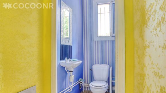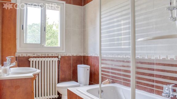 - Salle de bain avec douche, lavabo. Accessible depuis la chambre 2 et 3 par deux portes distinctes.