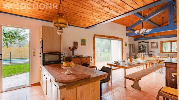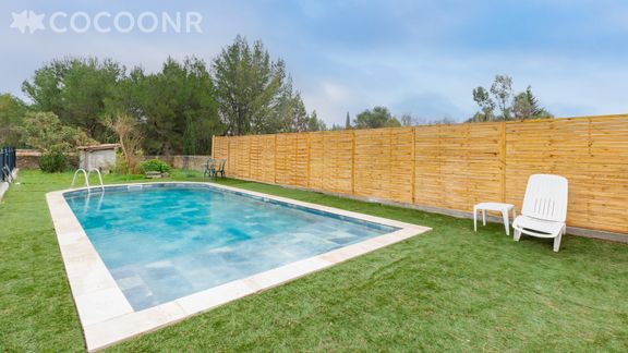 L'agence Cocoonr/Book&Pay vous propose à la location, à Carcassonne, cette charmante maison entièrement climatisée avec piscine, d’une superficie de 180 m² et pouvant accueillir jusqu’à 9 voyageurs. Elle est composée d’une pièce à vivre de 70 m², d'une cuisine équipée, de quatre chambres, d'une salle d'eau (avec douche) et vous pourrez profiter d’un jardin d’environ 1 500 m². Draps et serviettes inclus, nous n’attendons plus que vous !
