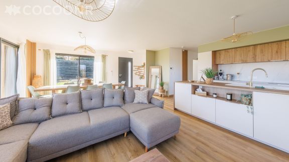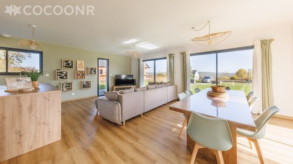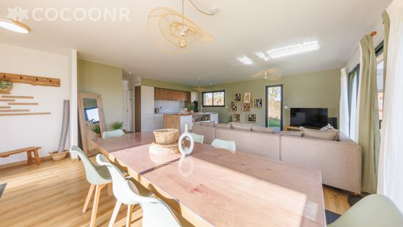 - Une pièce de vie de 45 m² avec TV, canapé et une salle à manger