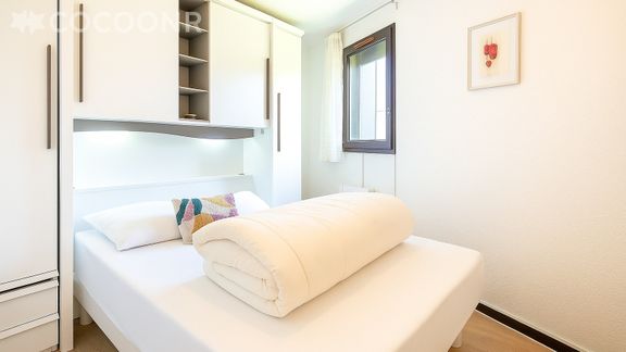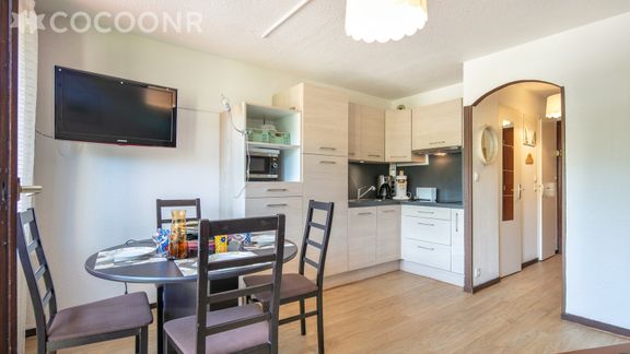- Une pièce de vie de 28 m² avec TV, canapé-lit double, espace repas et cuisine équipée avec notamment : bouilloire électrique, four à micro-ondes, grille-pain, lave-vaisselle, plaques de cuisson...