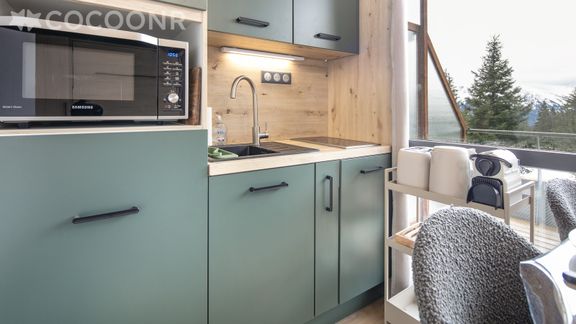 L'agence Cocoonr/Book&Pay vous propose à la location, à Chamrousse, ce charmant appartement avec vue montagne, avec station de ski accessible à pied, d’une superficie de 30 m² et pouvant accueillir jusqu’à 4 voyageurs. Situé au rez-de-chaussée et de plain-pied, il se compose d’une jolie pièce à vivre de 15 m², d'une kitchenette ouverte équipée, d’une belle chambre, d'une salle de bain (avec baignoire). Wifi, draps inclus, nous n’attendons plus que vous !