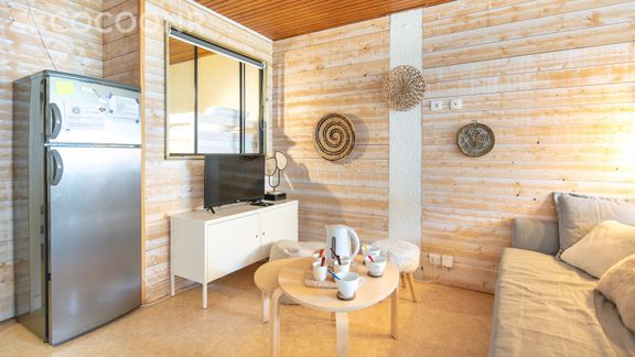- Une pièce de vie de 21 m² avec canapé, TV et coin repas