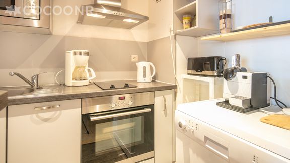 - Une cuisine équipée avec notamment : bouilloire électrique, four, four à micro-ondes, grille-pain, lave-vaisselle, Nespresso, plaques de cuisson...
