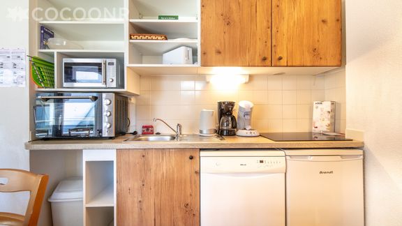 - Une cuisine équipée avec notamment : bouilloire électrique, four, four à micro-ondes, grille-pain, lave-vaisselle, plaques de cuisson...