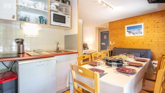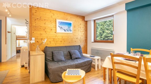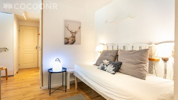 L'agence Cocoonr/Book&Pay vous propose à la location, à Chamrousse, ce charmant appartement avec station de ski accessible à pied, d’une superficie de 50 m² et pouvant accueillir jusqu’à 8 voyageurs. Situé au 1er étage (sans ascenseur), il se compose d’une jolie pièce à vivre de 25 m², d'une kitchenette équipée, de deux chambres et de deux salles de bain (avec douche et baignoire).