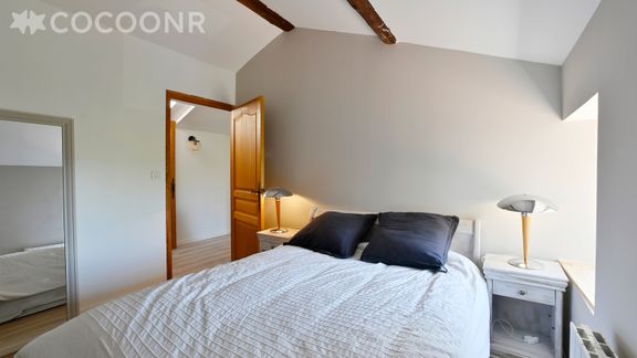 - Chambre 1 : chambre avec lit double (140×190), rangements muraux et vue sur le parc