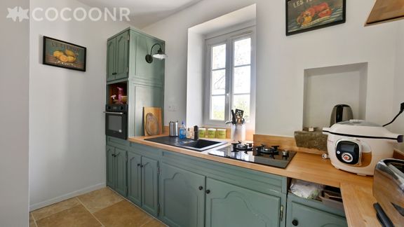 - Une cuisine équipée avec notamment : bouilloire électrique, four, four à micro-ondes, grille-pain, lave-vaisselle, plaques de cuisson...