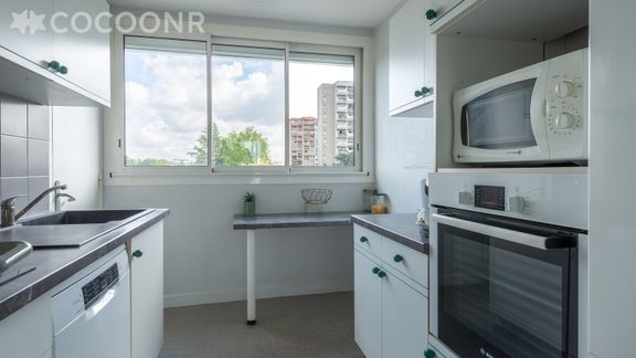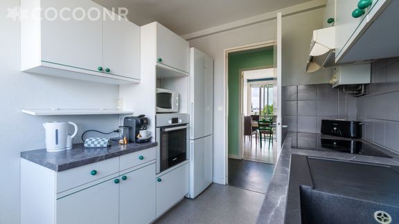 - Une cuisine équipée avec notamment : bouilloire électrique, four, four à micro-ondes, grille-pain, lave-vaisselle, plaques de cuisson...