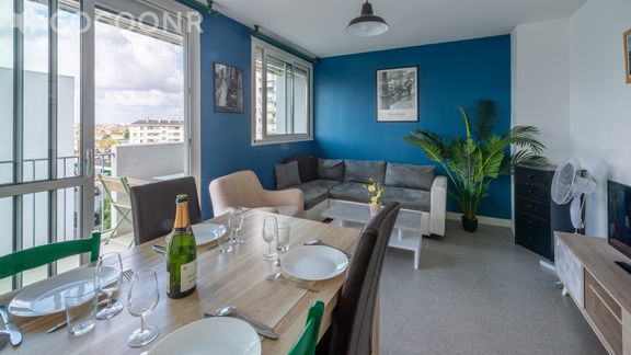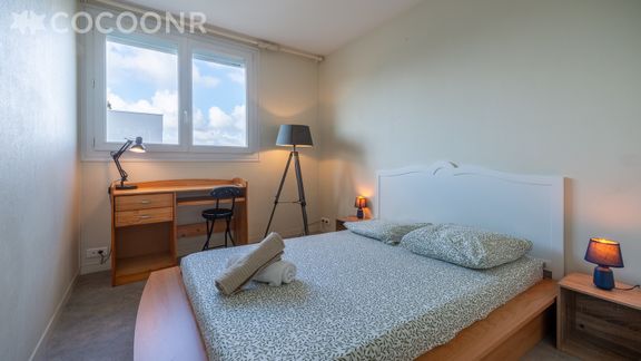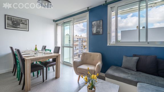 L'agence Cocoonr/Book&Pay vous propose à la location, à Cholet, ce charmant appartement d’une superficie de 77m² et pouvant accueillir jusqu’à 10 voyageurs. Situé au 3ᵉ étage (sans ascenseur), il se compose d’une jolie pièce à vivre de 20 m², d'une cuisine équipée, de quatre belles chambres, et d'une salle d'eau (avec douche). Wifi, draps et serviettes inclus, nous n’attendons plus que vous !