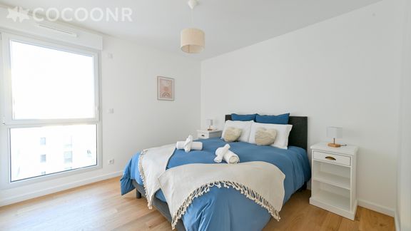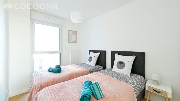 L'agence Cocoonr/Book&Pay vous propose à la location, à Cholet, ce charmant appartement d’une superficie de 60 m² et pouvant accueillir jusqu’à 5 voyageurs. Situé au 5e étage (avec ascenseur), il se compose d’une jolie pièce à vivre de 28 m², d'une cuisine équipée, de deux chambres, d'une salle d'eau (avec douche). Draps et serviettes inclus, nous n’attendons plus que vous !