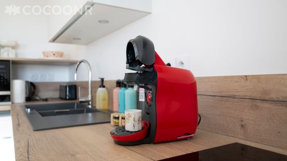 - Une cuisine équipée avec notamment : bouilloire électrique, four, four à micro-ondes, grille-pain, lave-vaisselle, plaques de cuisson...