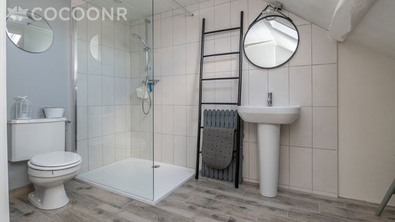 - Une salle d'eau avec douche à l'italienne, lave-linge et WC
