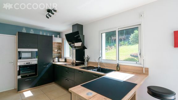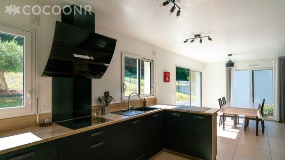 - Une cuisine équipée avec notamment : bouilloire électrique, four, four à micro-ondes, grille-pain, lave-vaisselle, plaques de cuisson, cafetière à filtre, Tassimo...