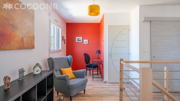 - Un coin lecture avec bibliothèque et fauteuils