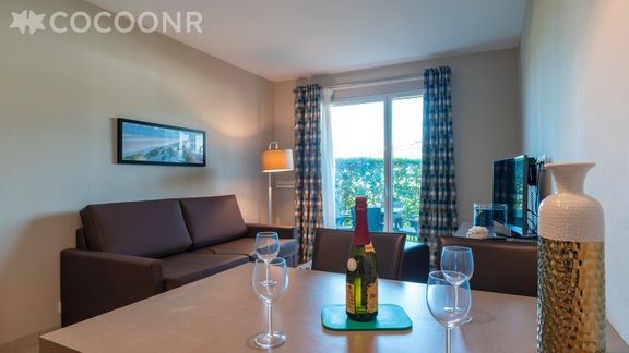 - Une pièce de vie de 37 m² avec canapé, TV, coin repas