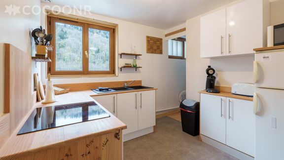 - Une cuisine équipée avec notamment : bouilloire électrique, four, four à micro-ondes, grille-pain, plaques de cuisson...