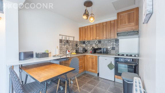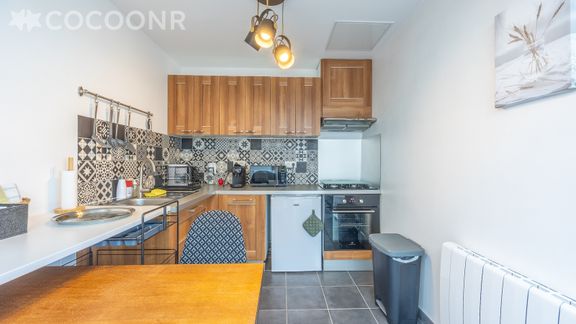 - Une cuisine équipée avec notamment : bouilloire électrique, four, four à micro-ondes, grille-pain, plaques de cuisson, machine à expresso...