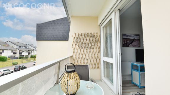 - Un premier balcon de 4 m² avec une table et deux chaises pour profiter des beaux jours