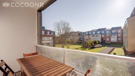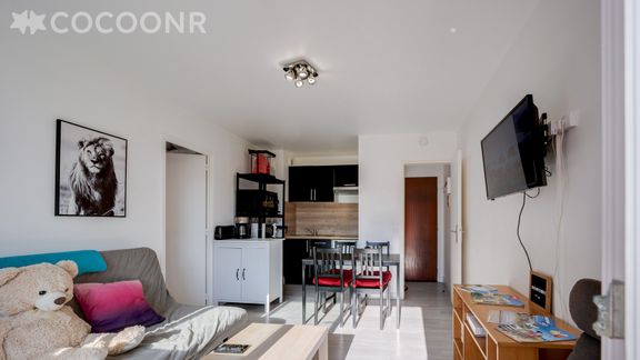 L'appartement pouvant accueillir jusqu'à 4 voyageurs se compose d'une pièce de vie avec canapé convertible en lit double, une cuisine ouverte sur le séjour, une chambre avec lit double et d'une salle de bain attenante. Balcon avec vue sur des espaces verts.Wifi.