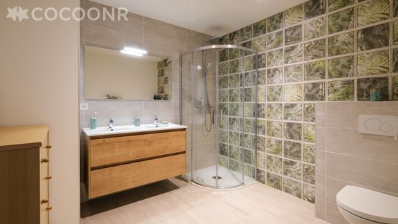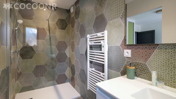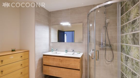 - Chambre 4 : avec 1 lit double (140×190) et sa salle d'eau privée (avec douche)