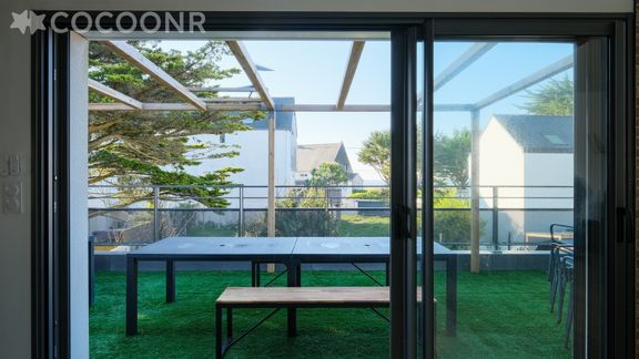 L'agence Cocoonr/Book&Pay vous propose à la location, à Damgan, cette charmante maison, à moins de 100 m de la plage, d’une superficie de 145 m² et pouvant accueillir jusqu’à 10 voyageurs. Elle est composée d’une jolie pièce à vivre de 35 m² (avec poêle), d'une cuisine ouverte équipée, de quatre belles chambres, de trois salles d'eau (avec douche) et vous pourrez profiter d’un jardin d’environ 330 m². Wifi, draps et serviettes inclus, nous n’attendons plus que vous !