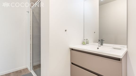 - Une salle d'eau avec une douche, une vasque et un WC.