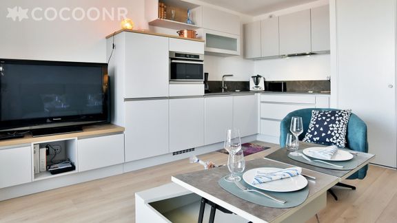 L'agence Cocoonr/Book&Pay vous propose à la location, à Dinard, ce charmant studio à moins d’un kilomètre de la plage, d’une superficie de 28 m² et pouvant accueillir jusqu’à 2 voyageurs. Situé au 3e étage (avec ascenseur), il se compose d’une jolie pièce à vivre de 30 m², d'une cuisine ouverte équipée et d'une salle d'eau (avec douche). Wifi, draps et serviettes inclus, nous n’attendons plus que vous !