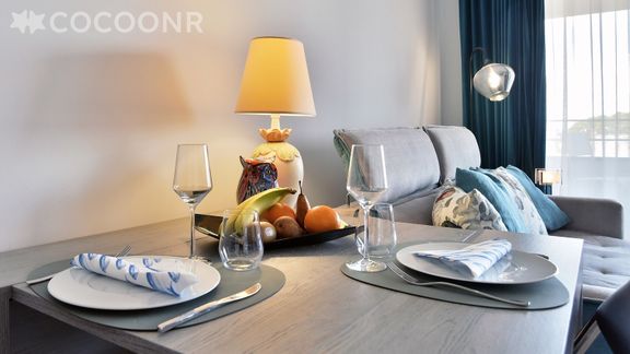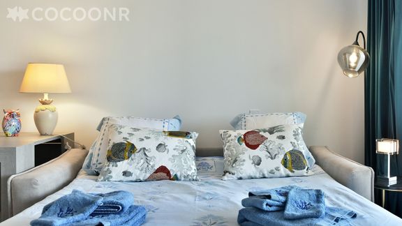 - Une pièce de vie de 30 m² avec TV, canapé-lit double et espace repas
