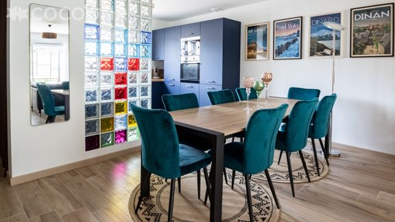 - Cuisine semi-ouverte entièrement équipée : réfrigérateur, plaques de cuisson, lave-vaisselle, four, cafetière Nespresso et à filtre, bouilloire, grille-pain, vaisselle et couverts...