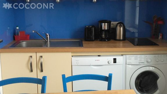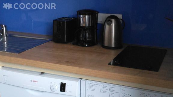- Une cuisine complètement équipée : four, cafetière, micro-ondes, grille-pain, bouilloire, etc.