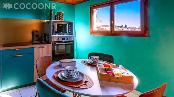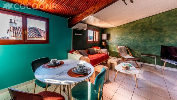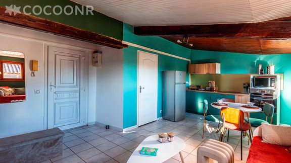 L'agence Cocoonr/Book&Pay vous propose à la location, à Draguignan, ce charmant appartement climatisé d’une superficie de 38 m² et pouvant accueillir jusqu’à 4 voyageurs. Situé au 5e étage (sans ascenseur, escaliers en colimaçon), il se compose d’une jolie pièce à vivre de 20 m², d'une cuisine équipée, de deux chambres, une salle d'eau (avec douche). Wifi (fibre optique), draps et serviettes inclus, nous n’attendons plus que vous !